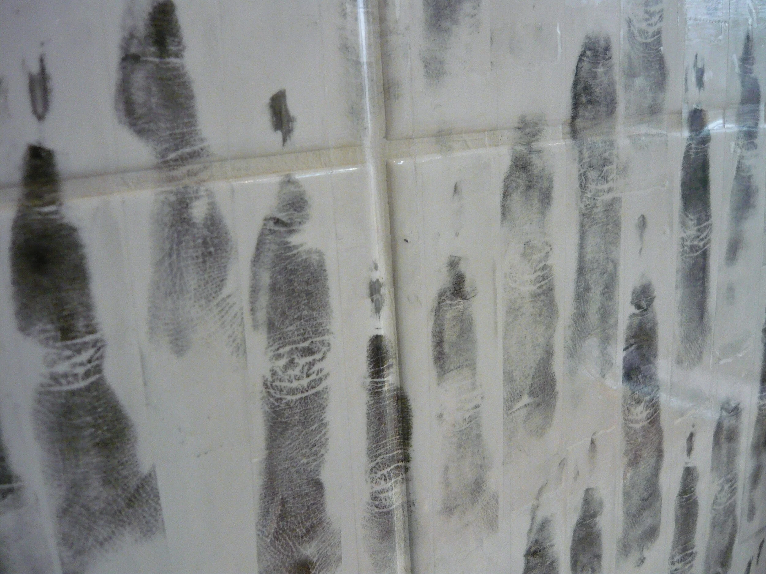 ‘If I'm quiet it’ll get me’ 2020, installation view, tape and charcoal